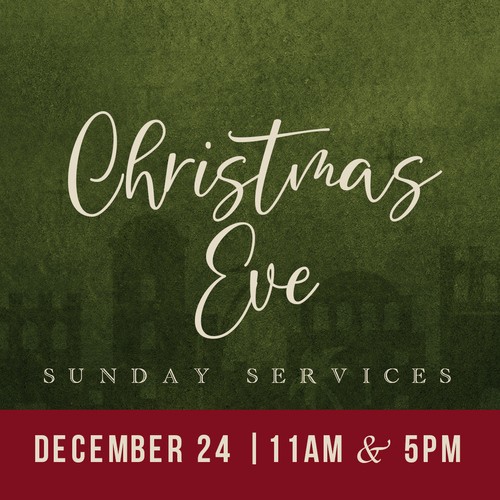 We hope you will join us Sunday, December 24th for Christmas Eve services in the Worship Center at 11 a.m. and 5 p.m. Come hear the story of Jesus' miraculous birth and sing some of your Christmas favorites. Be reminded that Jesus has called us to be the light of the world as we end under candlelight.