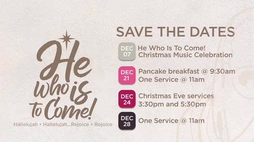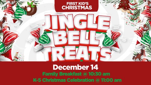 On December 14, you have a special time of celebration. Life Groups will meet at 9:30, followed by a breakfast with First Kids families at 10:30. Then at 11:00, all K–5th graders are invited to a fun Christmas Party during Children’s Worship.